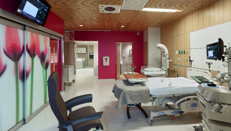 Additional program elements include an infusion clinic with eight infusion bays and four private infusion rooms; an OB/GYN clinic; the Women’s Center of Excellence; and a breast imaging clinic with four mammography rooms and two ultrasound rooms. The facility also includes two C-section/operating rooms with five recovery bays, 12 labor/delivery/recovery rooms, 35 NICU patient rooms, a triage unit with six exam rooms, 20 postpartum rooms with a baby nursery, and 15 antepartum rooms, all supported by dedicated nursing and clinical spaces.